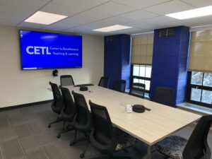 The CETL's new collaborative working space includes a state of the art conference room and large classroom space for presentations and events. Location Library, Teaching and Learning Center