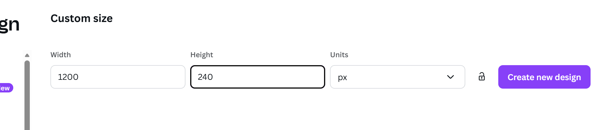 4. Enter the Banner Dimensions, 1200 x 240 in the spaces provided, and click "Create new design"
