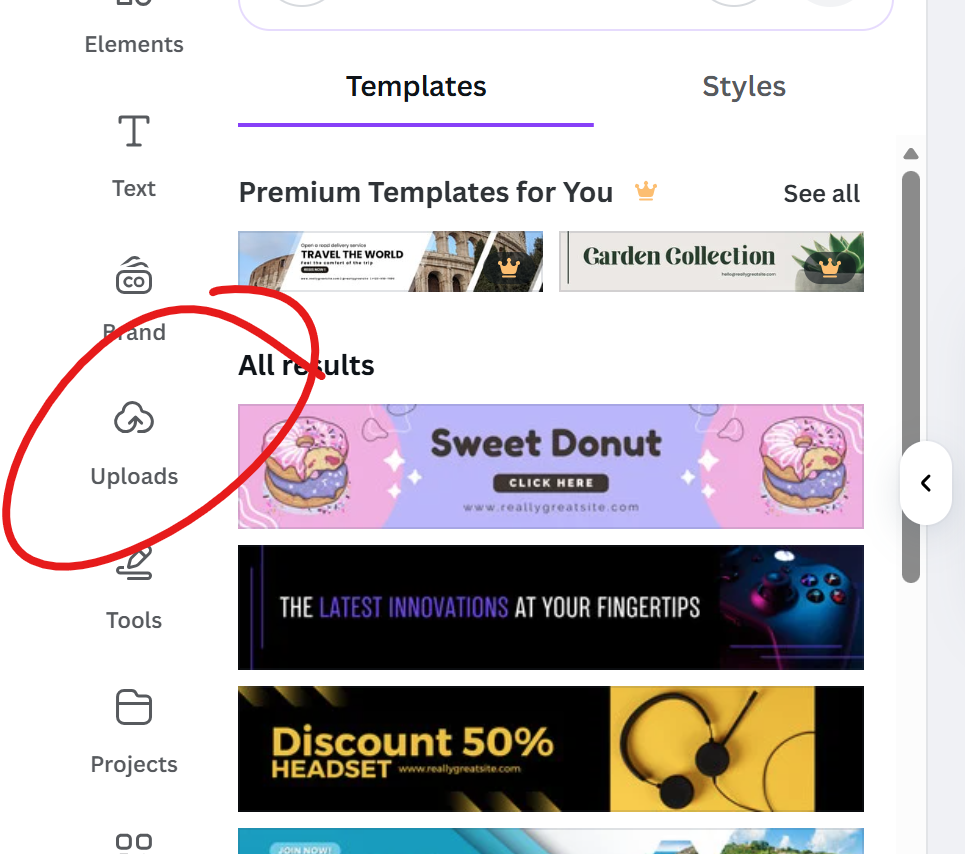 - Then click UPLOADS, locate your file. This will add the template to your Uploads list