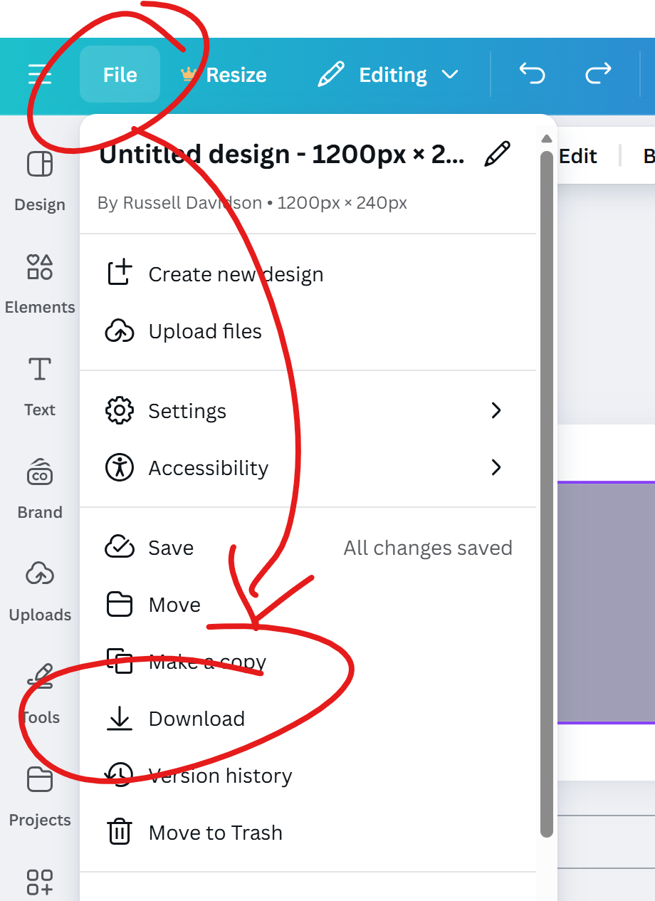 6. Now you can layer in text and images to make the banner yours. When you've got a satisfactory product banner, you'll want to download it. Click File at the top, then choose DOWNLOAD. The default settings should be fine.